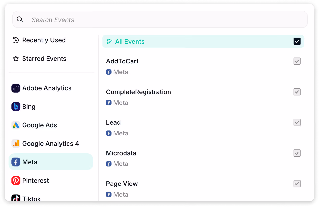 Running multi-channel campaigns? Use the Event Selector to ensure your most critical conversions—like purchase or add_to_cart — are firing correctly across every destination. This small step could save you thousands in misattributed spend.