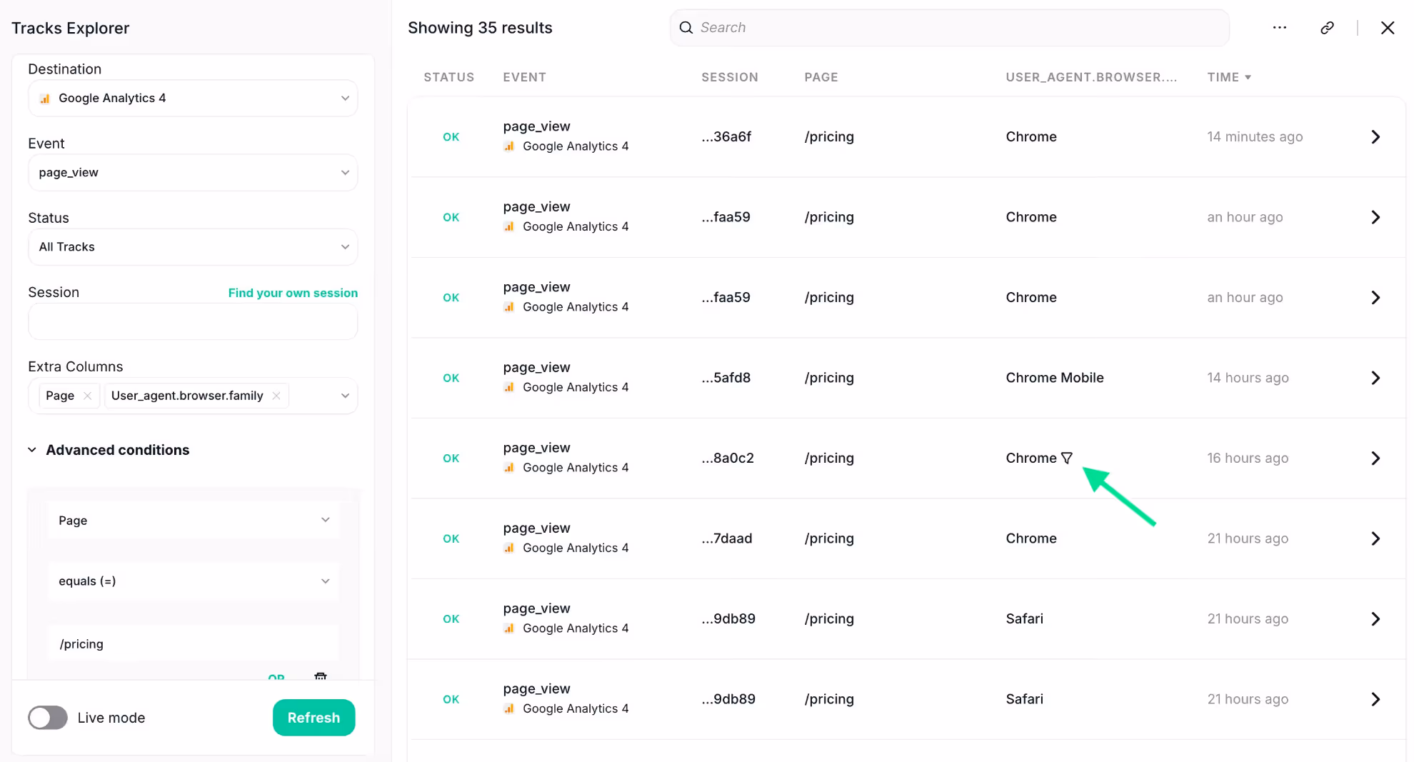 - Want to narrow it down to Chrome users on the “pricing” page? It's all possible with a few quick clicks.