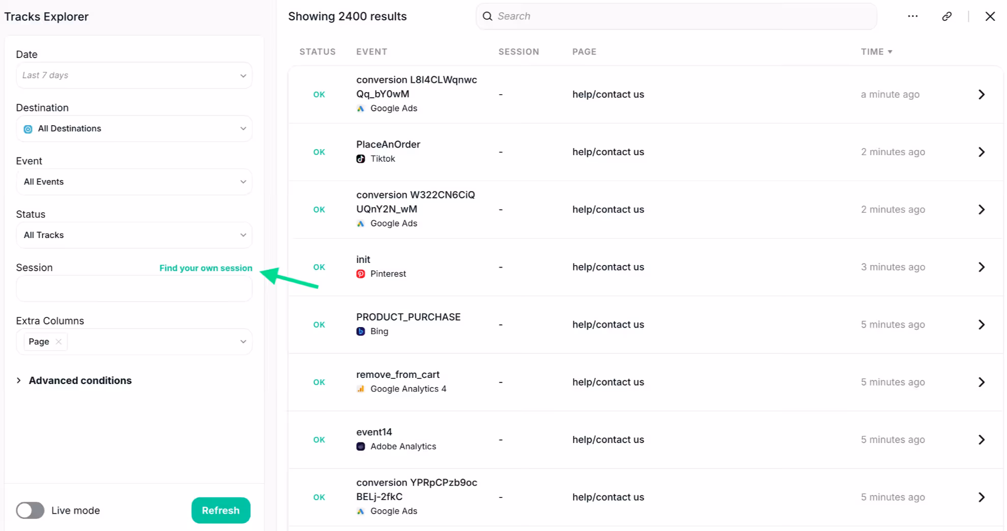 - From now on, your hits – and only your hits – will appear instantly in Trackingplan’s Tracks Explorer!