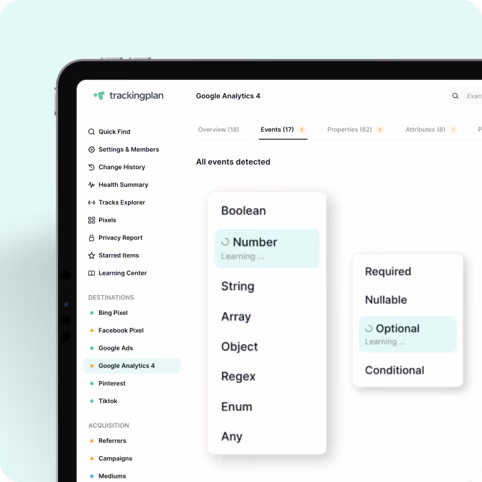 Maps your entire tracking ecosystem from real user data. No schemas or setup required.